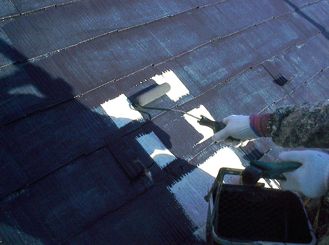 屋根塗装の下塗り(サーモアイシーラー)施工中